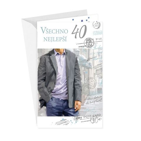 Přání k 40. narozeninám s textem uvnitř přání. Součástí blahopřání je barevně sladěna obálka. Originální technologie zpracování přáníčka od společnosti ARGUS - "Na detailu záleží!"