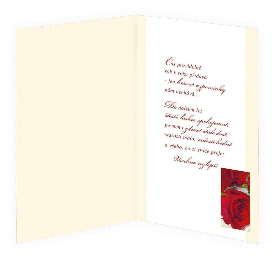 Přání k 50. narozeninám s textem uvnitř. Součástí blahopřání je barevně sladěna obálka. Originální technologie zpracování přáníčka od společnosti ARGUS - "Na detailu záleží!"