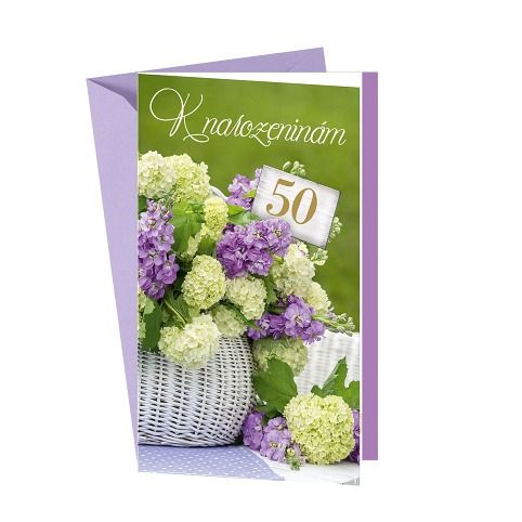 Přání k 50. narozeninám s textem a záložkou na peníze uvnitř přání. Součástí blahopřání je barevně sladěna obálka. Originální technologie zpracování přáníčka od společnosti ARGUS - "Na detailu záleží!"