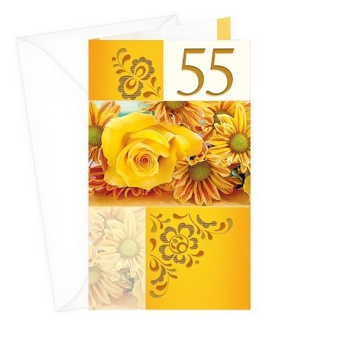 Přání k 55. narozeninám s textem a záložkou na peníze uvnitř přání. Součástí blahopřání je barevně sladěna obálka. Originální technologie zpracování přáníčka od společnosti ARGUS - "Na detailu záleží!"
