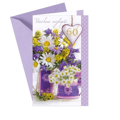 Přání k 60. narozeninám s textem uvnitř. Součástí blahopřání je barevně sladěna obálka. Originální technologie zpracování přáníčka od společnosti ARGUS - "Na detailu záleží!"
