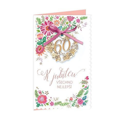Přání k 60. narozeninám s textem uvnitř přání a dřevěnou ozdobou na vrchní části. Součástí blahopřání je barevně sladěna obálka. Originální technologie zpracování přáníčka od společnosti ARGUS - "Na detailu záleží!"