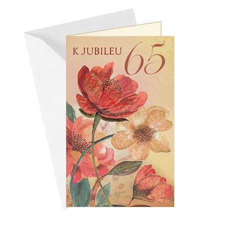Přání k 65. narozeninám s textem uvnitř přání. Součástí blahopřání je barevně sladěna obálka. Originální technologie zpracování přáníčka od společnosti ARGUS - "Na detailu záleží!"