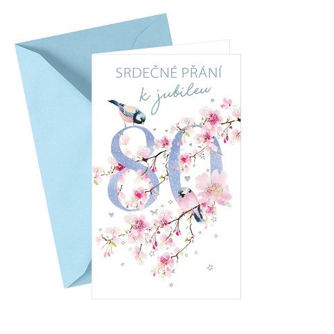 Přání k 80. narozeninám s textem uvnitř. Součástí blahopřání je barevně sladěna obálka. Originální technologie zpracování přáníčka od společnosti ARGUS - "Na detailu záleží!"