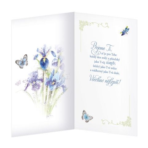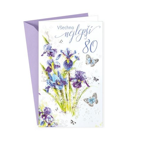 Přání k 80. narozeninám s textem uvnitř. Součástí blahopřání je barevně sladěna obálka. Originální technologie zpracování přáníčka od společnosti ARGUS - "Na detailu záleží!"