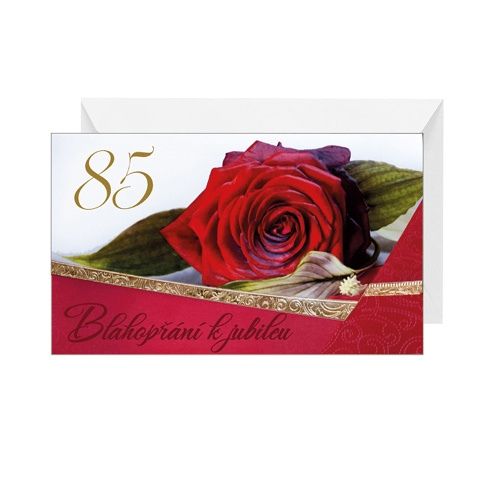 Přání k 85. narozeninám s textem uvnitř přání. Součástí blahopřání je barevně sladěna obálka. Originální technologie zpracování přáníčka od společnosti ARGUS - "Na detailu záleží!"
