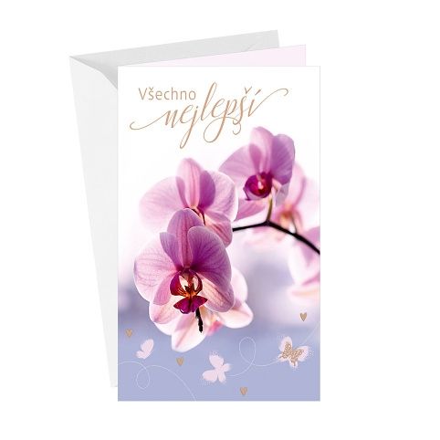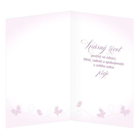 Přání k narozeninám nebo k svátku s textem uvnitř přání. Součástí blahopřání je barevně sladěna obálka. Originální technologie zpracování přáníčka od společnosti ARGUS - "Na detailu záleží!"
