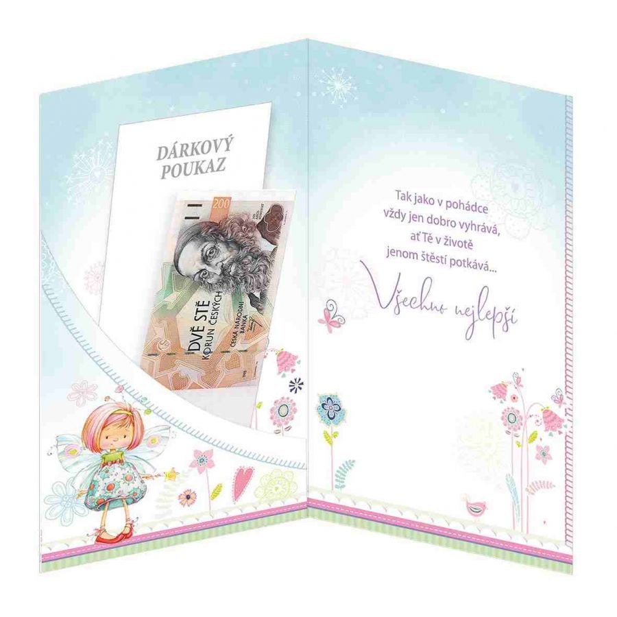 Blahopřání k narozeninám nebo svátku dítěte s textem. Přidanou hodnotou přáníčka je kapsa na peníze, která se nachází uvnitř přání. Součástí blahopřání je barevně sladěna obálka. Originální technologie zpracování od společnosti ARGUS - "Na detaile záleží!"
