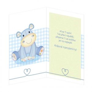 Blahopřání k narozeninám dítěte s textem a lepeným komponentem, který dodává přáníčku 3D efekt. Součástí blahopřání je barevně sladěna obálka. Originální technologie zpracování od společnosti ARGUS - "Na detaile záleží!"