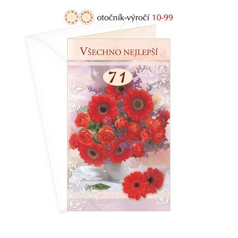Přání k narozeninám pro ženu s otočníkem a textem uvnitř přání. Otočník umožňuje výběr věku obdarovaného (od 10 po 99). Součástí blahopřání je barevně sladěna obálka. Originální technologie zpracování přáníčka od společnosti ARGUS - "Na detailu záleží!"