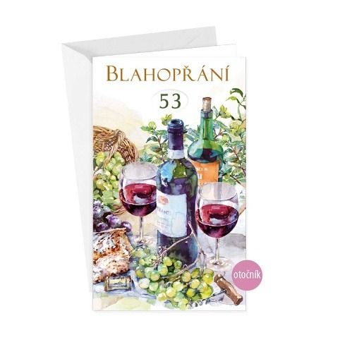Narozeninové přání s otočníkem a textem uvnitř přání. Otočník umožňuje výběr věku obdarovaného (od 10 po 99). Součástí blahopřání je barevně sladěna obálka. Originální technologie zpracování přáníčka od společnosti ARGUS - "Na detailu záleží!"