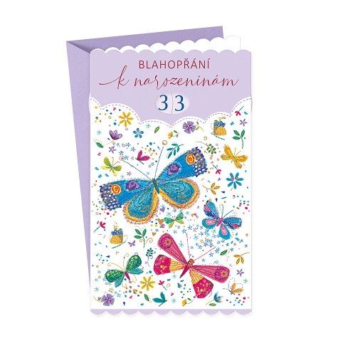 Narozeninové přání s otočníkem, klopou na peníze a s textem uvnitř přání. Otočník umožňuje výběr věku obdarovaného (od 10 po 99). Součástí blahopřání je barevně sladěna obálka. Originální technologie zpracování přáníčka od společnosti ARGUS - "Na detailu záleží!"