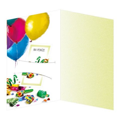 Přání k narozeninám s otočníkem, který umožňuje výběr věku obdarovaného (od 12 po 18). Německý text na přední straně a bez textu uvnitř. Součástí blahopřání je barevně sladěna obálka. Originální technologie zpracování přáníčka od společnosti ARGUS - "Na detailu záleží!"