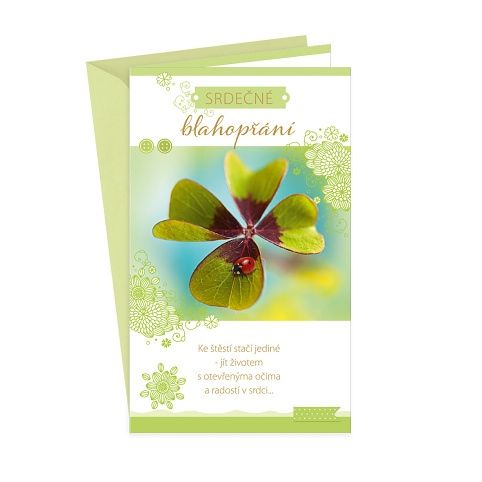 Přání pro blízkou osobu k narozeninám, svátku, nebo jiné příležitosti s textem uvnitř přání. Součástí blahopřání je barevně sladěna obálka. Originální technologie zpracování přáníčka od společnosti ARGUS - "Na detailu záleží!"