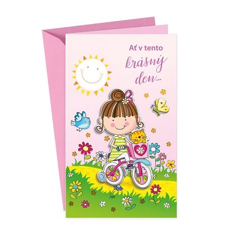 Blahopřání k svátku jména dítěte s textem a lepeným komponentem, který dodává přáníčku 3D efekt. Součástí blahopřání je barevně sladěna obálka. Originální technologie zpracování od společnosti ARGUS - "Na detaile záleží!"