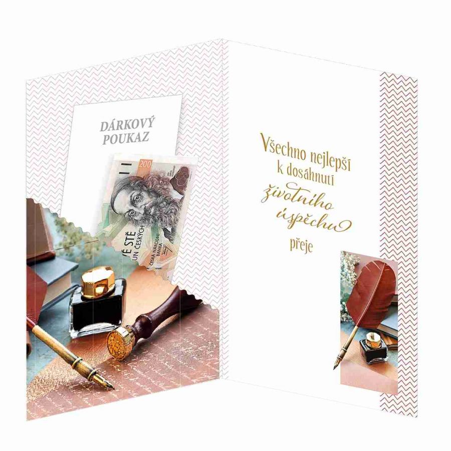 Blahopřání k ukončení studia s textem uvnitř. Přidanou hodnotou přáníčka je kapsa na peníze, která se nachází uvnitř přání. Součástí blahopřání je barevně sladěna obálka. Originální technologie zpracování od společnosti ARGUS - "Na detaile záleží!"