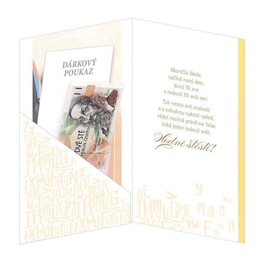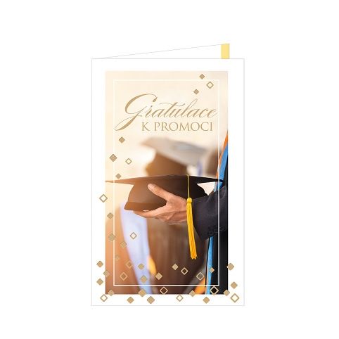 Blahopřání k promoci s textem uvnitř. Přidanou hodnotou přáníčka je kapsa na peníze uvnitř. Součástí přání je barevně sladěna obálka. Originální technologie zpracování od společnosti ARGUS - "Na detaile záleží!"