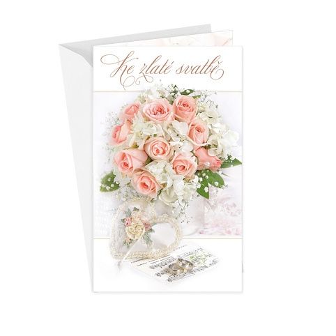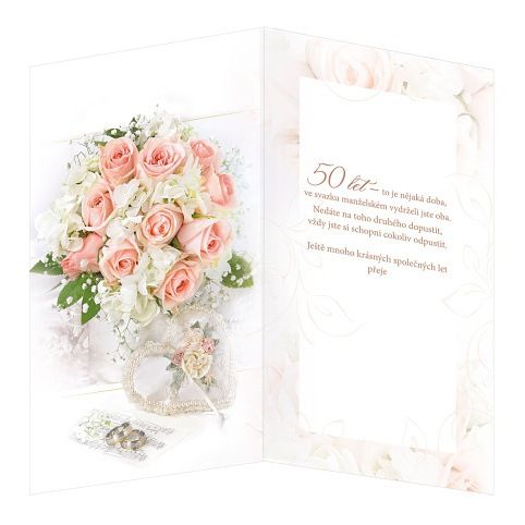 Přání k výročí zlaté svatby - 50 let. Součástí přání je barevně sladěna obálka. Originální technologie zpracování od společnosti ARGUS - "Na detailu záleží!"
