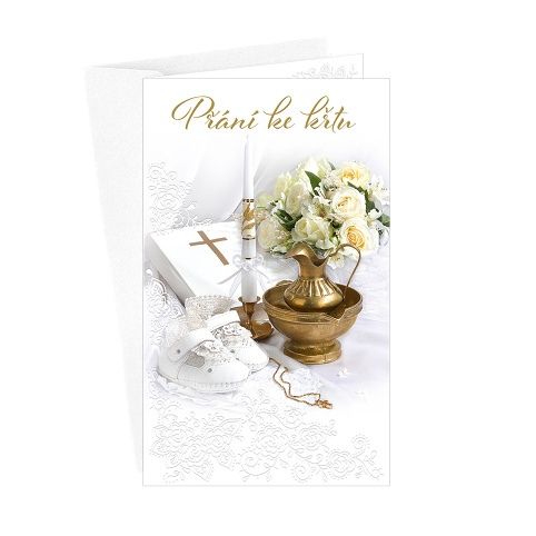 Blahopřání k svátostí křtu. Součástí přání je barevně sladěna obálka. Originální technologie zpracování od společnosti ARGUS - "Na detaile záleží!"