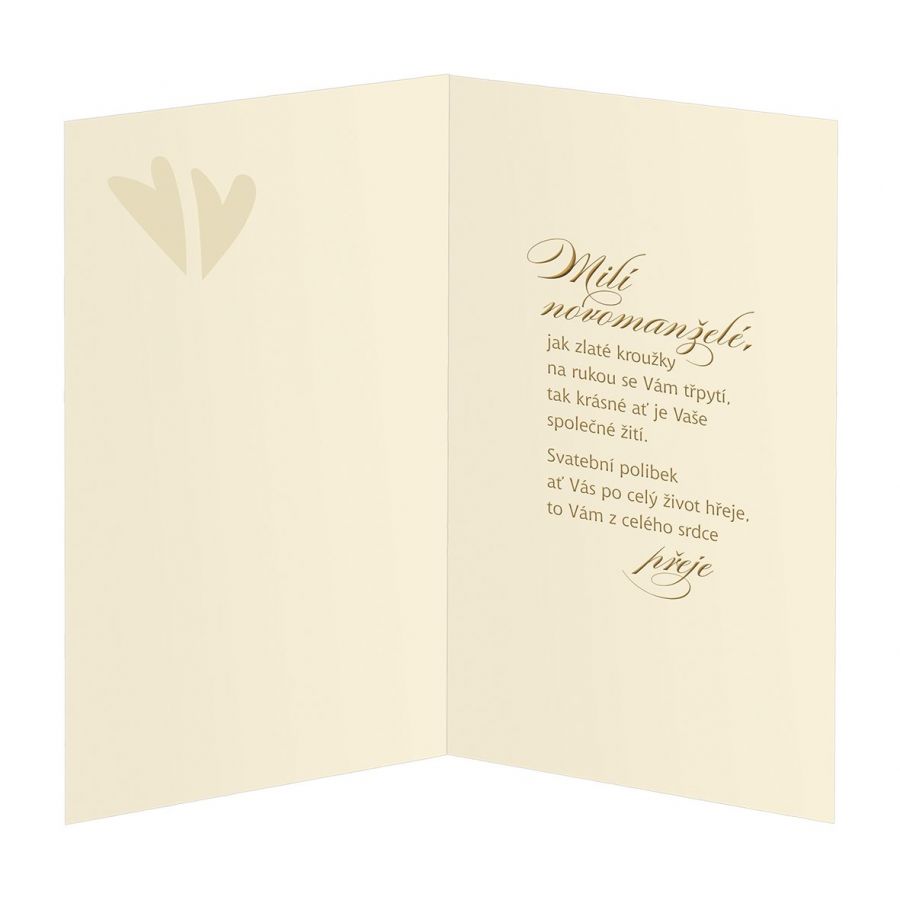 Přání ke svatbě s textem uvnitř. Součástí přání je barevně sladěna obálka. Originální technologie zpracování od společnosti ARGUS - "Na detailu záleží!"