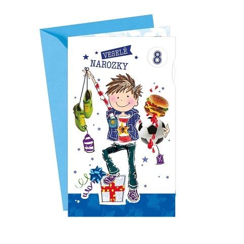 Blahopřání k narozeninám dítěte s textem. Přidanou hodnotou přáníčka je možnost výběru věku dítěte od 8. roku po 14. rok. Součástí blahopřání je barevně sladěna obálka. Originální technologie zpracování od společnosti ARGUS - "Na detaile záleží!"