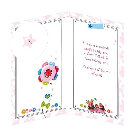 Blahopřání k narozeninám dítěte s textem. Přidanou hodnotou přáníčka je možnost výběru věku dítěte od 8. roku po 14. rok. Součástí blahopřání je barevně sladěna obálka. Originální technologie zpracování od společnosti ARGUS - "Na detaile záleží!"
