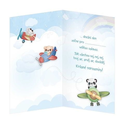 Blahopřání k narozeninám dítěte s textem. Přidanou hodnotou přáníčka je možnost výběru věku dítěte od 1. roku po 7. rok. Součástí blahopřání je barevně sladěna obálka. Originální technologie zpracování od společnosti ARGUS - "Na detaile záleží!"