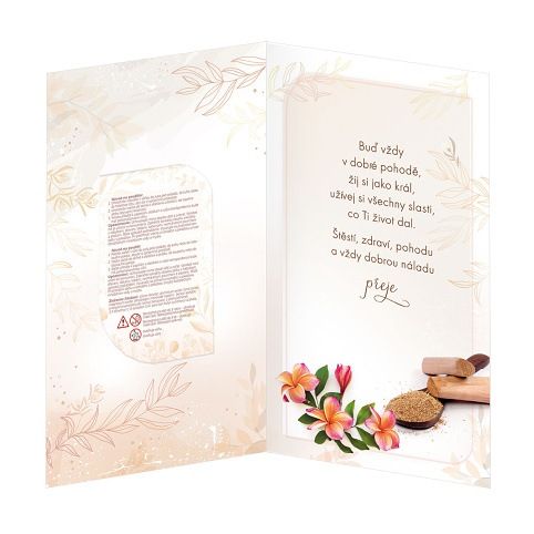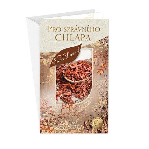 Voňavé přání k narozeninám nebo svátku pro muže s textem uvnitř přání a s malým dárkem - voňavý sáček s vůní santalového dřeva. Součástí blahopřání je také barevně sladěná obálka. Originální technologie zpracování přáníčka od společnosti ARGUS - "Na detailu záleží!"