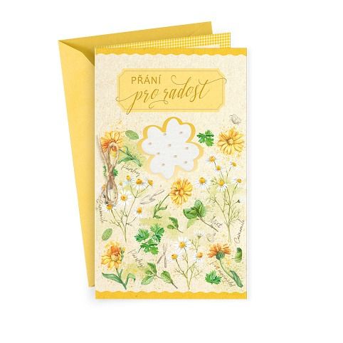 Přání k narozeninám nebo svátku s textem uvnitř. Přání obsahuje semínka petrželu a instrukce k péči na zadní straně. Součástí blahopřání je barevně sladěna obálka. Originální technologie zpracování přáníčka od společnosti ARGUS - "Na detailu záleží!"