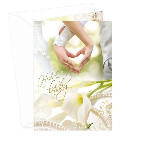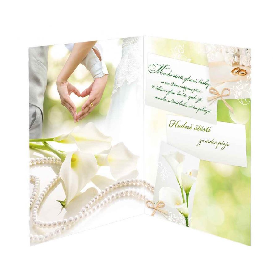 Svatební blahopřání s textem uvnitř: "Mnoho štěstí, zdraví, lásky, co více Vam můžeme přát... V dobrém i zlém budete spolu žít, nenechte si Vaší lásku ničím pokazit. Hodně štěstí ze srdce přeje" 3D efekt umocňuje dojem prostoru. Součástí je také barevně sladěná obálka. Originální technologie zpracování od společnosti ARGUS - "Na detailu záleží!"