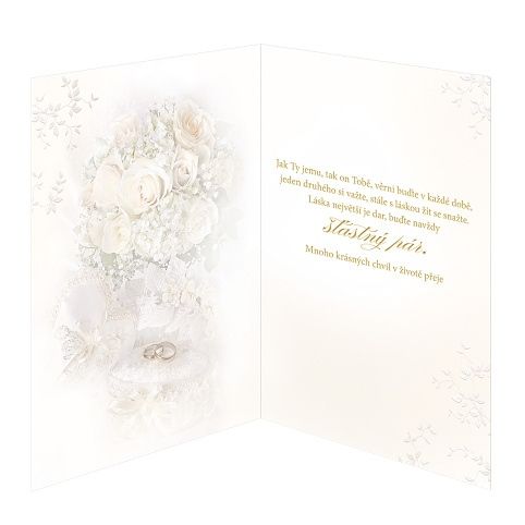 Svatební blahopřání s textem uvnitř přání. Součástí je také barevně sladěná obálka. Originální technologie zpracování od společnosti ARGUS - "Na detailu záleží!"