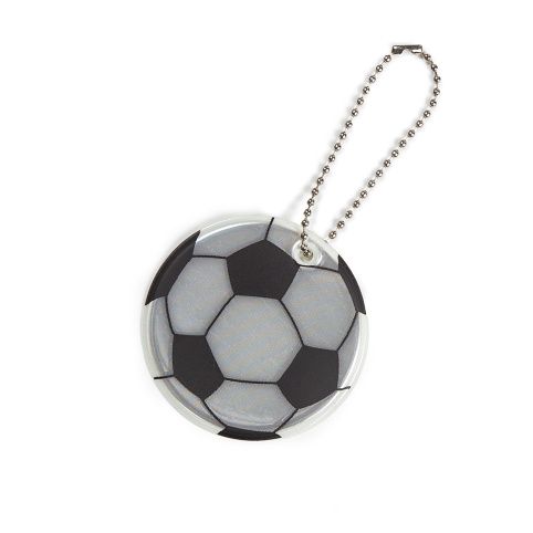 Reflexní přívěsek ve tvaru fotbalového míče -bílý. Moderní, zábavný a především na velkou vzdálenost dobře viditelný doplněk, vhodný pro děti. Zejména za snížené viditelnosti či ve tmě.