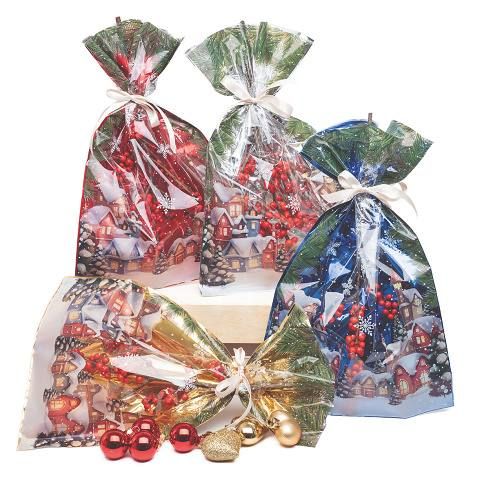 Nádherné dárkové sáčky - pytlíky s vánoční tematikou.* materiál polypropylen* prní strana průsvitná s potiskem a druhá jednobarevná metalická* balení obsahuje 100 ks* cena je za 1 ks