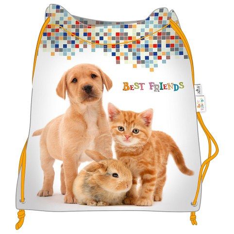 Školní sáček Best Friends na přezůvky a sportovní potřeby s vnitřní kapsou na zip. Kapsa, neboli sáček je skvělý na školní úbor, výtvarnou výchovu, ale i jako menší taštička.