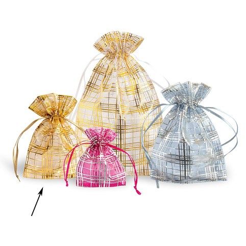 Organzový dárkový pytlík s ražbou - vhodný nejen jako ochrana na šperky, ale i na zabalení drobných dárků. V horní části obsahuje stužku, která se dá stáhnout a můžete z ní udělat mašličku. Balení obsahuje 12 ks sáčků v různých barvách. Cena je za 1 ks.