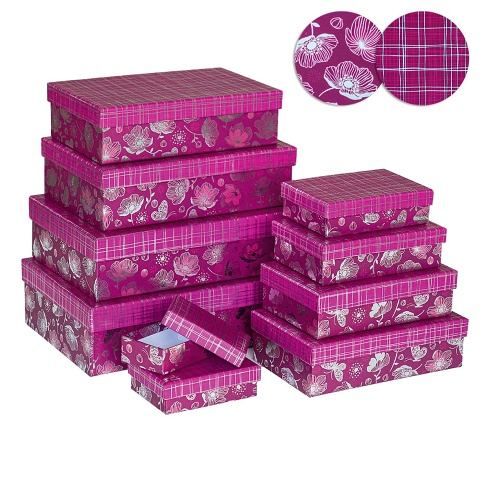 SET nádherných papírových krabic ve tvaru obdélníka se stříbrnou ráži z dílny ARGUSu. Obsahuje 10 ks krabic. Vhodná nejen k zabalení dárků, ale také jako dekorace do bytu a odkládací prostor pro různé drobnosti v poličkách vašeho domova.
