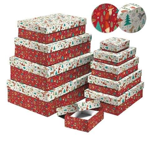 SADA nádherných papírových krabic ve tvaru obdélníku z dílny ARGUSu. Objsahuje 10 ks krabic, 2 různé vánoční motivy, z každého motivu je 5 ks v setu. Vhodná nejen k zabalení dárků, ale také jako dekorace do bytu a odkládací prostor pro různé drobnosti v poličkách vašeho domova.