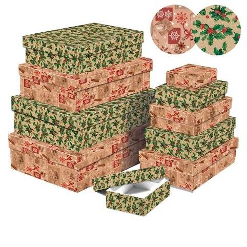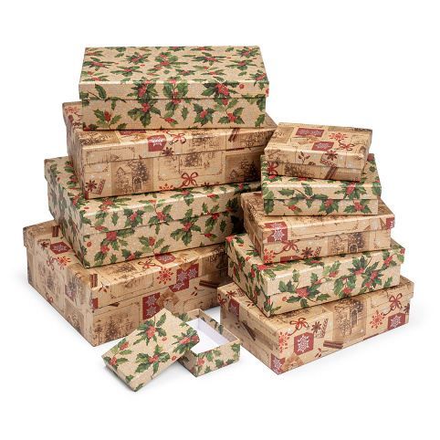 ARGUS Sada 10 ks dárkových krabic vánoční natur kraft 25008161