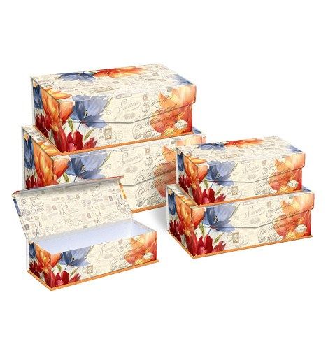 SADA dárkových krabic s magnetickou klopou ve tvaru obdélníku. Obsahuje 5 ks krabic. Vhodná nejen k zabalení dárků, ale také jako dekorace do bytu a odkládací prostor pro různé drobnosti v poličkách vašeho domova.