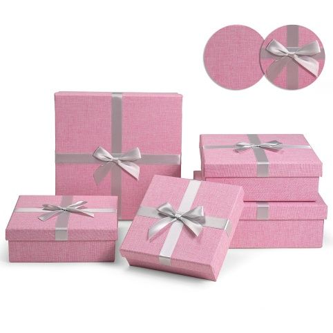 SADA textilních krabic se saténovou stužkou ve tvaru čtverce. * obsahuje 5 ks krabic* vhodná nejen k zabalení dárků, ale také jako dekorace do bytu a odkládací prostor pro různé drobnosti v poličkách vašeho domova* rozměry jednotlivých krabiček: 2508 - 16*16*5 cm; 2509 - 18*18*6 cm; 2510 - 20*20*7 cm; 2511 - 22*22*8 cm; 2512 - 24*24*9 cm
