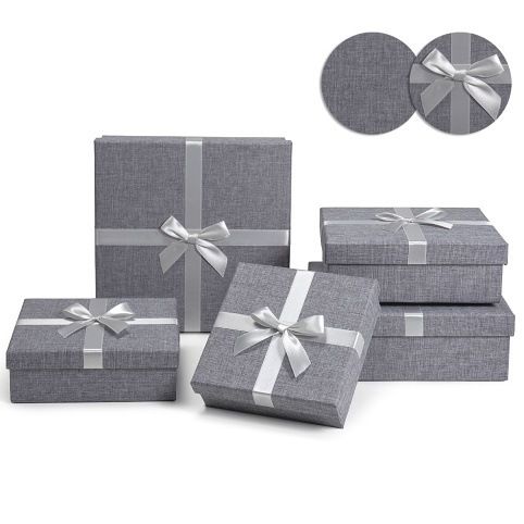 SADA textilních krabic se saténovou stužkou ve tvaru čtverce. * obsahuje 5 ks krabic* vhodná nejen k zabalení dárků, ale také jako dekorace do bytu a odkládací prostor pro různé drobnosti v poličkách vašeho domova* rozměry jednotlivých krabiček: 2508 - 16*16*5 cm; 2509 - 18*18*6 cm; 2510 - 20*20*7 cm; 2511 - 22*22*8 cm; 2512 - 24*24*9 cm