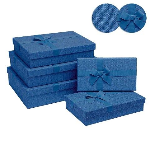 SET nádherných papírových krabic ve tvaru obdélníka s mašlí. Obsahuje 5 ks krabic. Vhodná nejen k zabalení dárků, ale také jako dekorace do bytu a odkládací prostor pro různé drobnosti v poličkách vašeho domova.