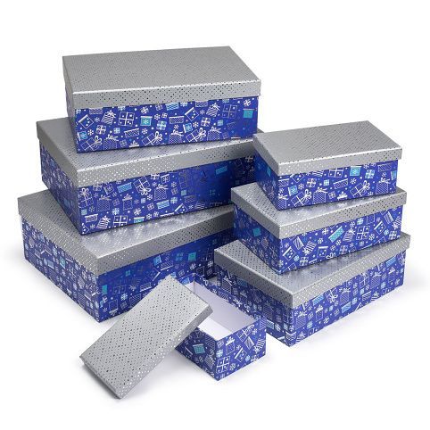 SADA nádherných papírových krabic ve tvaru obdélníku s metalickou ražbou z dílny ARGUSu. Obsahuje 7 ks krabic. Vhodná nejen k zabalení dárků, ale také jako dekorace do bytu a odkládací prostor pro různé drobnosti v poličkách vašeho domova.
