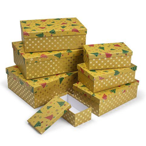SADA nádherných papírových krabic ve tvaru obdélníku z dílny ARGUSu. Obsahuje 7 ks krabic. Vhodná nejen k zabalení dárků, ale také jako dekorace do bytu a odkládací prostor pro různé drobnosti v poličkách vašeho domova.