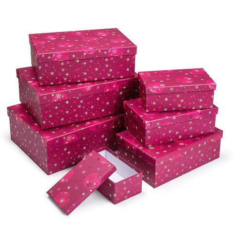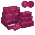 SADA nádherných papírových krabic ve tvaru obdélníku z dílny ARGUSu. Obsahuje 7 ks krabic. Vhodná nejen k zabalení dárků, ale také jako dekorace do bytu a odkládací prostor pro různé drobnosti v poličkách vašeho domova.