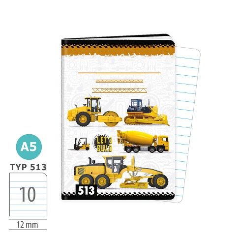 Sešit A5 TYP 513 LET’S BUILD, velikost A5, 10 listů. Nezbytná součást školních potřeb.