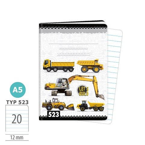 Sešit A5 TYP 523 LET’S BUILD, velikost A5, 20 listů. Nezbytná součást školních potřeb.