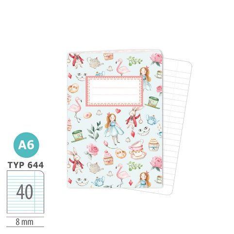 Sešit A6 TYP 644 Alice’s adventures in Wonderland, velikost A6, 40 listů. Nezbytná součást školních potřeb. Hodí se i do kanceláře.