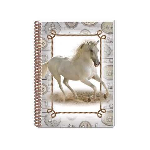 Sešit se spirálou Horses, velikost A5, obsahuje 80 linkovaných listů. Nezbytná součást školních potřeb. Hodí se i do kanceláře.