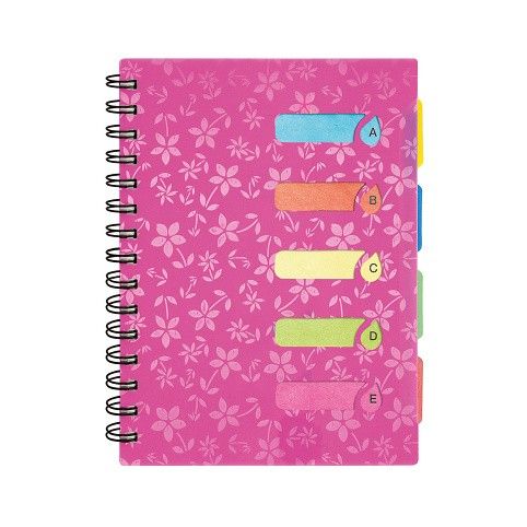 Sešit se záložkami/s plastovými rozřaďovači různých barev s praktickou kapsičkou, velikost A4, linkovaný, 120 listů. Nezbytná součást školních potřeb. Hodí se i do kanceláře